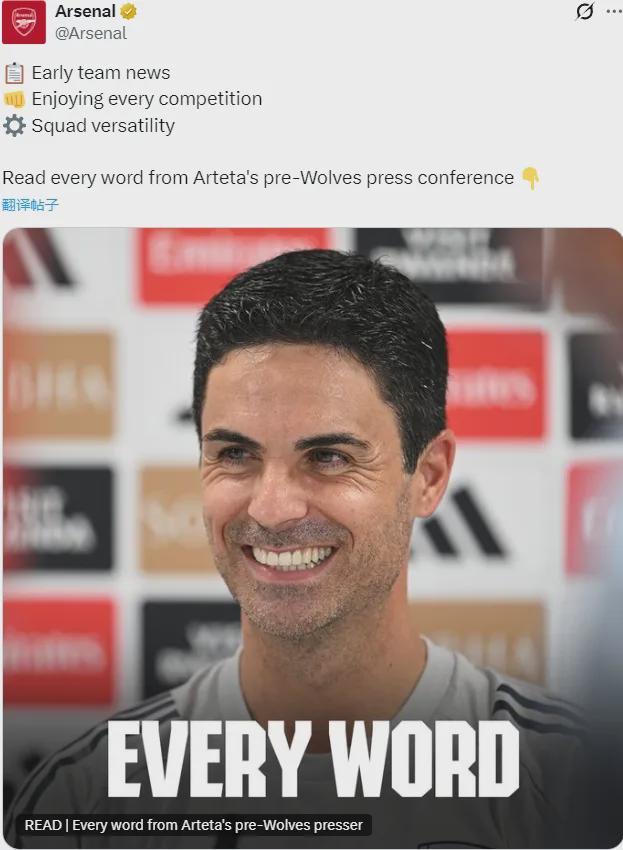 毫无疑问,这场比赛阿尔特塔依然可以大轮换!